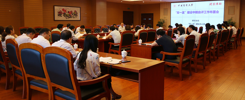 研究生院副院长许风国就本次自评工作的指导思想、考核原则与方式、组织管理、任务分解以及时间安排等方面作了重点说明。与会人员就体制机制、标志性成果、社会服务、中药学学科建设成效等方面进行了深入讨论和交流。随后,研究生院常务副院长邵蓉汇报了即将开展的专业学位水平评估、新增专业学位博士点等工作。